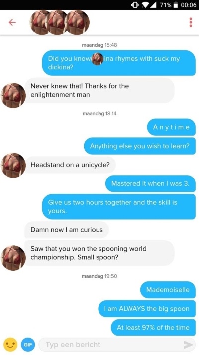 Vooral als je Tinder match ze niet eerder heeft gehoord!