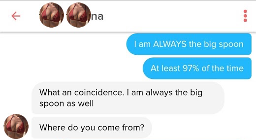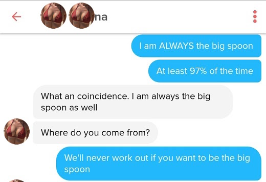 Mijn Tinder match vraagt of ik de kleine lepel ben.