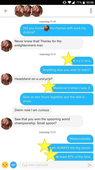 - Een super gedetailleerde breakdown van mijn Tinder gesprek.
